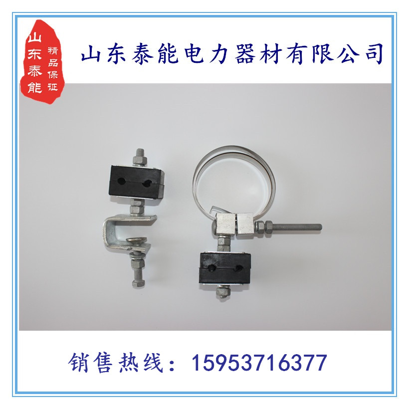 直销预绞丝式引下线夹 不锈钢钢带型 带胶块引下线夹