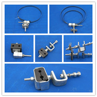 用途:引下线夹夹具主要用于ADSS及OPGW光缆在杆塔上引线时的固定安装。如,在光缆接头杆(塔)处,光缆从夹持金具引到接续保护盒安装处的固定作用;光缆从杆塔上引下到地下管道,电缆沟、直埋,以及引下进入机房等处的固定。避免光缆在风力作用下与杆塔或其他物件摩擦而损坏光缆,以保护光缆的安全。
