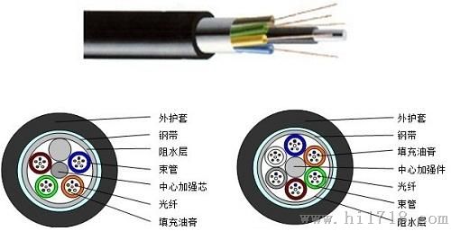 GYTA光缆的结构是将单模或多模光纤套入由高模量的塑料做成的松套管中,套管内填充阻水化合物。 缆芯的中心是一根金属加强芯,对于某些芯数的光缆来说,金属加强芯外还需挤上一层聚乙烯,松套管(和填充绳)围绕中心加强芯绞合成紧凑和圆形的缆芯,缆芯内的缝隙充以阻水填充物。涂塑铝带(APL)纵包后聚乙烯外护套成缆。