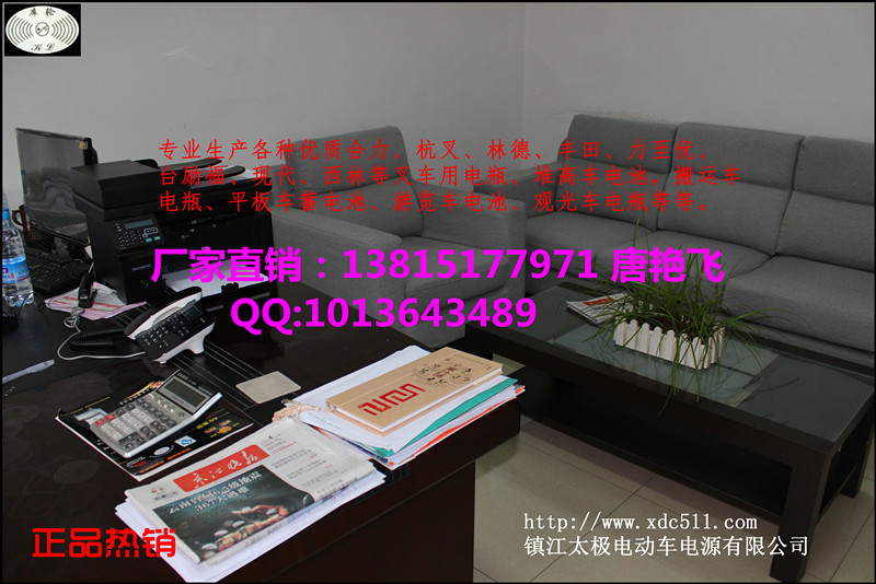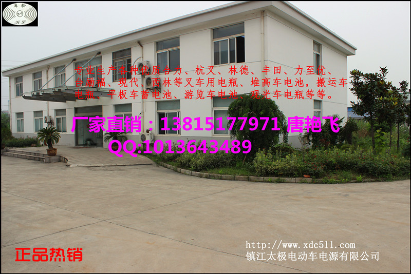 我是镇江太极电动车电源有限公司的销售经理唐艳飞,镇江太极电动车电源有限公司是一家非常专业的叉车电池、叉车蓄电池、叉车电瓶,堆高车电池、搬运车蓄电池,游览车蓄电池、高尔夫球车蓄电池生产厂家,技术力量雄厚,可以根据每一位客户量身定做所需要的国产或者替代进口叉车蓄电池产品,产品远销国内外,质优价廉,深受广大客户的一致好评,欢迎各位来电洽谈:0511-88805607 13815177971 唐艳飞(销售经理),QQ:1013643489,网址:www.xdc511.com
