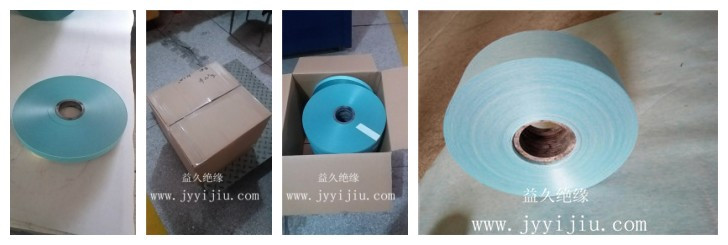 特点及用途: 是由聚酯薄膜两面涂以F级粘合剂,两面复以聚酯纤维纸而成的复合材料。该复合材料具有良好的介电性能,有较高的耐热性和机械强度;适用于作F级绝缘的普通型和湿热带型电槽绝缘、匝间绝缘和衬垫绝缘,也可作电器线圈绝缘。