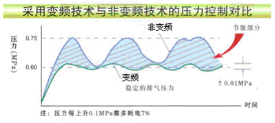 图:变频技术与非变频技术的压力控制对比