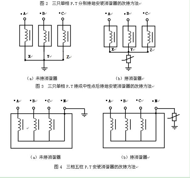 3、在日常运行中,由于单项接地或负载不对称等其它原因造成三项电压不对称, 这时消谐器上有一定电压,运行人员勿直接接触。