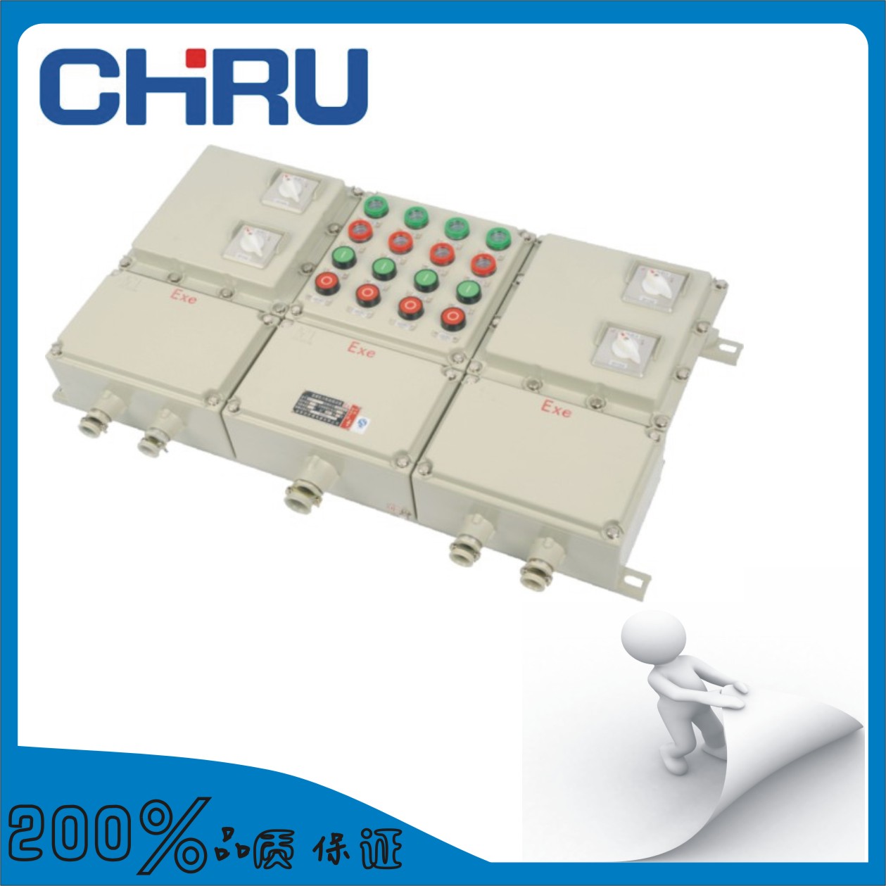 外壳采用采用高强度铸铝合金制成外表面静电喷塑内装的元件有按钮控制开关仪表继电器或各种功能模块其中按钮控制开关电流表和电压表指示灯均为防爆元件控制箱内部元件功能控制开关有多种功能可供选择.指示可根据用户的要求进行排列可实现多种灯也有多种颜色可供选择由于该产品变化多端订货时请提供线路图.