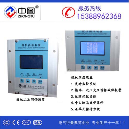 (3)适用电压等级:66KV、35KV、10KV、6KV、3KV及以下;如果电压等级在110KV、220KV以上,我公司有专门的YTWX-2微机消谐装置适用。
