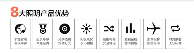 无不良眩光、无频闪。消除了普通路灯不良眩光所引起的刺眼、视觉疲劳与视线干扰,提高驾驶的安全性;启动无延时,通电即达正常亮度,无须等待,消除了传统路灯长时间的启动过程;绿色环保无污染:不含铅、汞等污染元素,对环境没有任何污染;