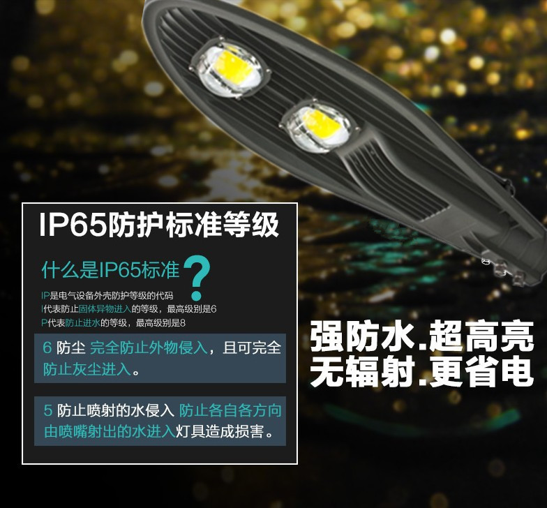 散热器与灯壳一体化设计,LED直接与外壳紧密相接,通过外壳散热翼与空气对流散热,充分保证了LED路灯50000小时的使用寿命。按照每天工作12个小时计算,其寿命也在10年以上,维护费用极低;灯壳采用铝合金压铸成型,可以有效的散热和防水、防尘。灯具表面进行了耐紫外线抗腐蚀处理,整体灯具达到IP65标准;