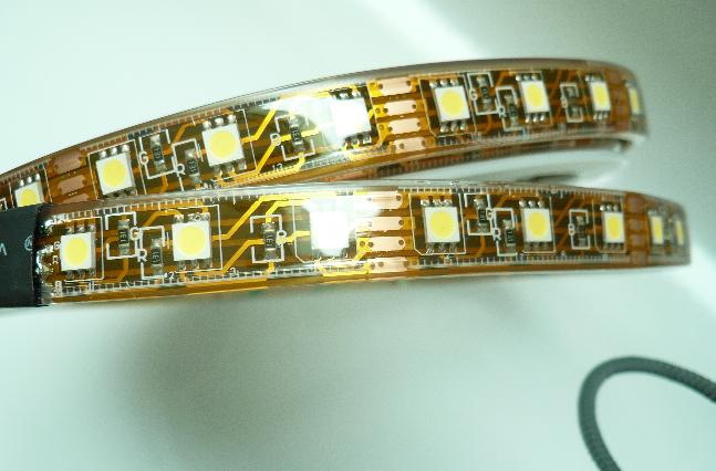 LED灯带具有亮度均匀,光衰弱,无色差,色温良好,使用寿命长,使用方便,可360°全方位弯折,背面为美国进口3M胶带,易黏贴,不易脱落。