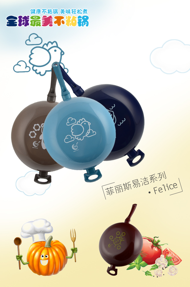 锅内采用杜邦公司授权使用的顶级不粘层科技,不粘耐久性能是传统不粘锅的1.5倍;不粘层不含任何的PFOA物质,不含任何铅镉等重金属成分。锅具外表面采用搪瓷工艺制作,永不掉色、掉漆,让图案长久保持;锅底图案精美、可爱、色彩丰富,让厨房烹饪不再单调;(外表面搪瓷是一层类似玻璃的材质,此工艺的应用让锅具外表具有独特的抗污和易清洁功能)。锅体采用高纯度铝材经过冲压技术而成,加厚的锅壁、锅底让锅体坚硬耐用;(菲丽斯锅具锅璧较花享系列厚,菲丽斯壁厚3.3mm,花享壁厚2.9mm)铝的热传导率比铸铁、不锈钢快3倍,加热后有很好的储热功能,节能节时;基于高纯度铝基材的应用,不粘锅拥有超强的抗酸碱能力,且永不生锈,防止了生锈的铁锅带来氧化铁对人体肝脏的损伤。锅具通体无铆钉结构,没有任何接缝,不会藏污纳垢;锅体轻便,可不费力气掂锅,移动。海豚型手柄,把手的流线设计符合人机工程学,舒适握感让做菜掂锅轻松自如。锅具使用炉灶:菲丽斯系列非复底锅适用燃气灶,卤素炉,电磁炉,电陶炉,电炉等热源。手柄采用电木材质,防止被高温烫伤(金属手柄容易发烫,不利于握持);外喷亮面漆,美观耐用;手柄末端圆孔设计,方便将锅挂起,节省收纳空间。 联系人:田经理,移动电话:18059808905,固定电话: 0592 — 5856273 ,联系QQ :2959480896,公司网址:www.500m.net,公司名称:厦门市五百米供应链有限公司,公司地址:厦门市湖里区东方财富广场B栋1504,联系人:田经理,QQ :2959480896,移动电话:18059808905,固定电话:0592-5856273 ,公司名称:厦门市五百米供应链有限公司,公司地址:厦门市湖里区东方财富广场B栋1504,公司网址:www.500m.net,http://tvsjiaju.tmall.com/