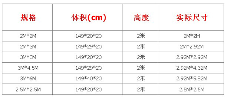 (尺寸选择:2*2M、2.5*2.5M、2*3M、3*3M、3*4M、3*4.5M、3*6M 4*4M 4.5*4.5M 5*5M 6*6M 4*8M 4*6M)