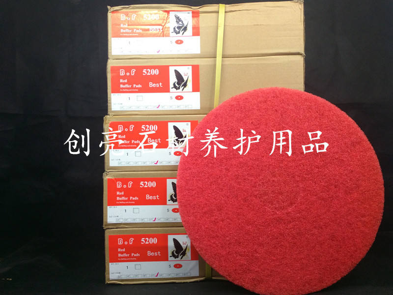 红色清洁垫负责清洁硬地面,刷洗能力强却不伤害地面。与洗地机配合,清洗地毯及硬地面(瓷砖、抛光砖、大理石、花岗岩、水磨石、环氧树脂地坪地面),特别是平时保养,都会使用到红色百洁垫。
