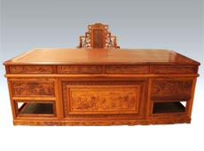 专业定制高端缅甸花梨书桌 大师精品 精雕实木书房系列