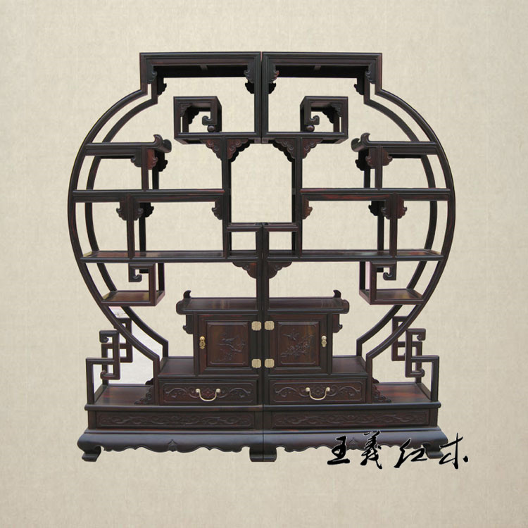 缅甸花梨多宝格博古架王义红木精雕细琢