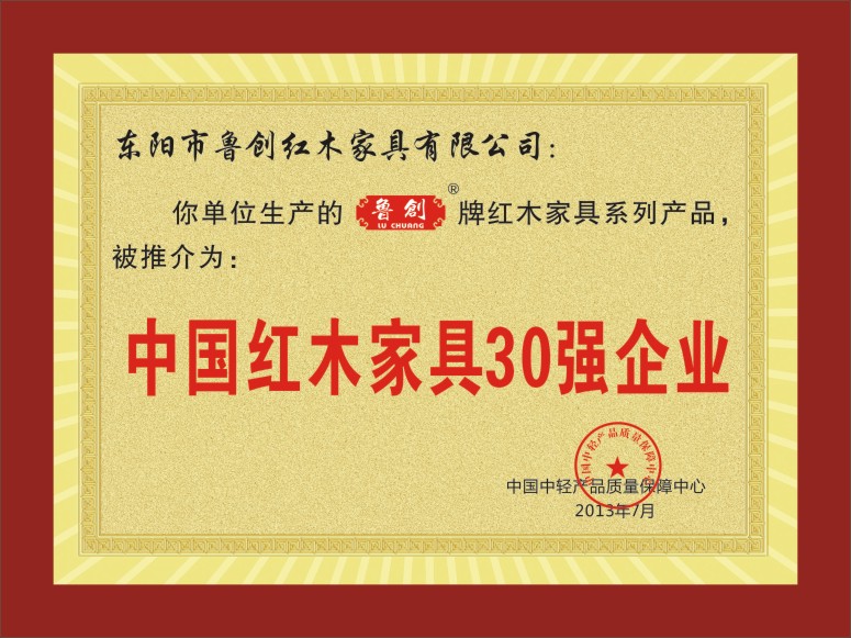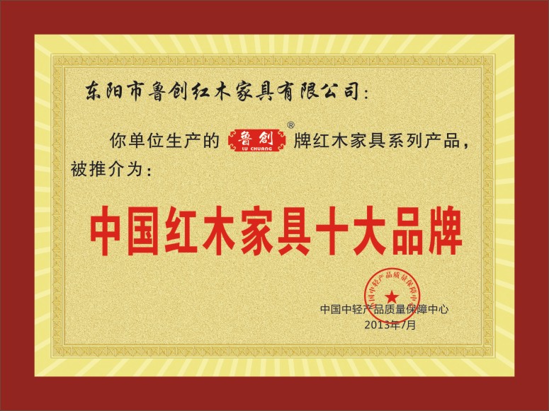 东阳市鲁创红木家具有限公司,是一家专业生产古典红木家具、东阳木雕的企业,公司红木家具均采用进口酸枝木、花梨木等优质红木原材料,经低温烘干处理,精雕细作而成。公司于1999年创建,是东阳红木家具行业中起步比较早的企业之一。由于经营理念领先,品质有保障,利用网络优势、借助人才的配合,经销商、代理商遍布全国各地,在青岛、扬州、沈阳、哈尔滨、北京等各地开起了多家专卖店,发展至今全国已拥有近百家商户。