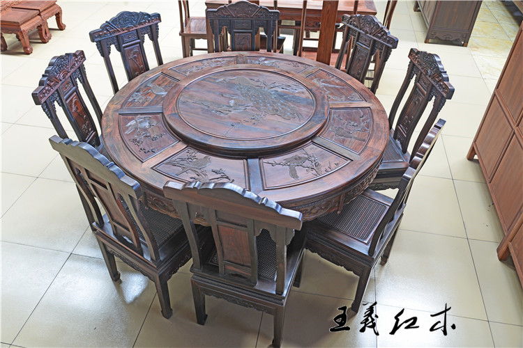 菏泽老挝红酸枝家具 中式红酸枝木餐桌椅 红酸枝木餐桌报价