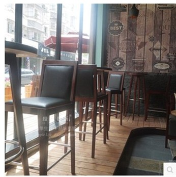 实木酒吧吧台桌 酒吧椅 实木吧椅 酒吧高脚桌 一桌两椅