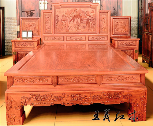 供应缅甸花梨材质古典红木双人床 独板大料 真材实料 王义红