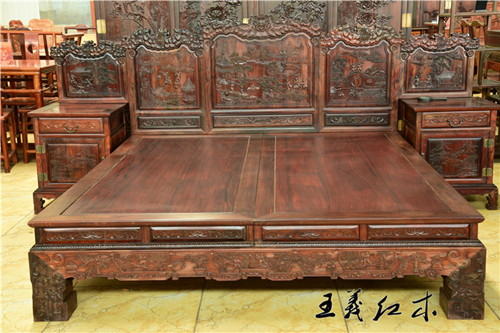 中式大红酸枝木雕床 实木大床 卧室必备家具 值得拥有