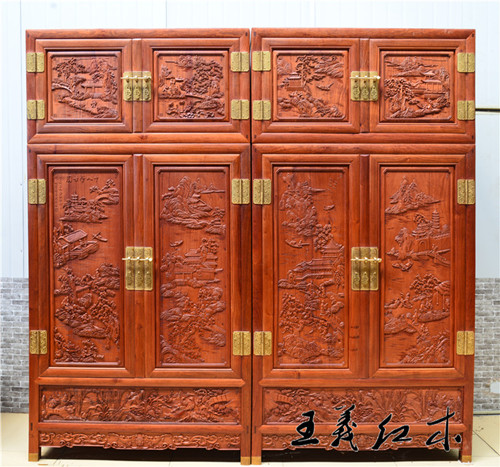 王义红木红酸枝龙纹顶箱柜雕龙储物柜