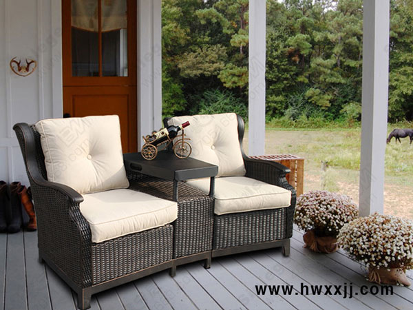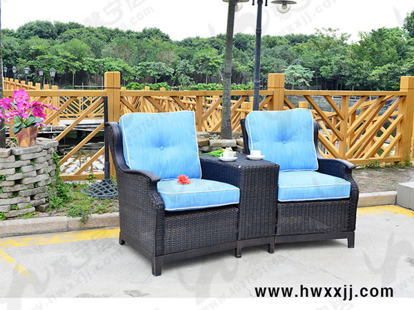 PE藤编情侣连体椅别墅阳台休闲桌椅露台桌椅仿藤家具户外家具