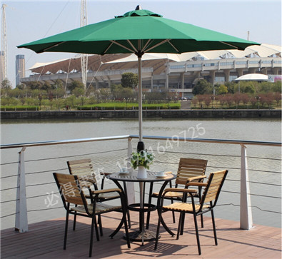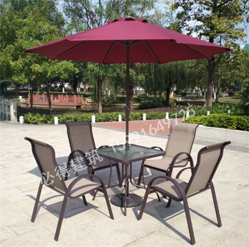 陕西必得露天桌椅制作骨架采用铝合金材质专业制作焊接,表面采用特斯林制作,产品经久耐用,户外可使用五年以上,产品户外使用可配置户外遮阳伞,具有良好的休闲感觉