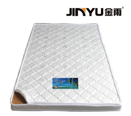 椰棕床垫棕芯:整洁的椰棕丝,经过卷曲定型,形成千万根植物“弹簧”再由雾化的天然橡胶粘接,产品具有高强弹力效果,睡眠中脊椎平衡。立体网络结构,具有良好的通风透气性,和透水性长期使用,不雾潮气,特别对于长期卧床的病人保持肌肤良好的透气环境。产品具有天然性、耐疲劳性,有益健康,长期使用,不走形,平整美观。硬棕床垫特别经过防螨、防蛀、抗菌处理,经久耐用、安全、环保、净洁,是居家的首选床垫。