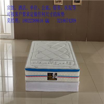 床垫厂专业生产、定制各种规格的高中档弹簧床垫,宾馆酒店专用床垫,客房床垫,公寓床垫等,价格低价位。弹簧床垫一般可以分为:1、弹簧+海绵床垫2、弹簧+棕床垫3、弹簧+乳胶床垫。