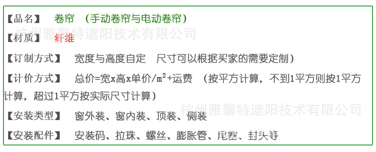 (2)窗帘宽度按门幅宽度,2m定高计算.