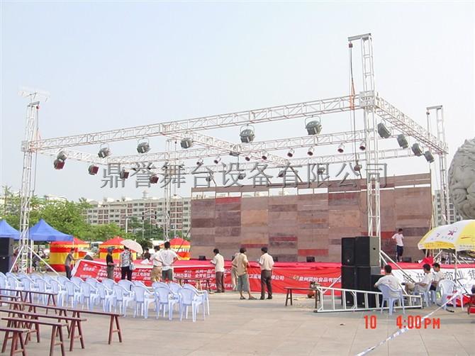 鼎誉舞台设备有限公司是一家专业设计、生产和销售各种流动演出器材的厂家,主要生产各种规格型号的铝合金桁架、舞台灯架、展览架、背景架、活动舞台、透明舞台、truss架,铝合金灯光架,铝合金灯架,铝合灯光音响架,铝合金展示架,LAYER架,电视台演播厅灯棚,大型演出背景架,,舞台灯架,太空架,航空架,铝合金折叠舞台,可调舞台,组合舞台,流动舞台,活动舞台,铝质透明舞台;拆装舞台,铝合金舞台,拼装舞台,组合舞台, t型舞台,圆型舞台,升降型舞台,异型舞台,演出器材,灯光展览展示架等,可根据客户要求订做。公司自成立以来,以优质的产品和诚信合作的理念,服务于海内外客户朋友,产品远销北美、欧洲、中东等地区及香港地区。期待与您携手,互惠互利,共同发展!