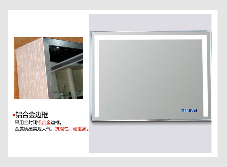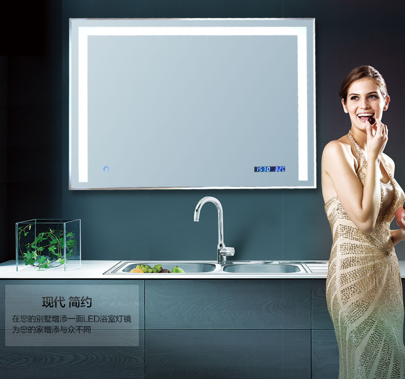 LED灯镜 浴室镜价格 卫浴镜 LED灯镜批发 杰之洋带时间温度,触摸开关LED灯镜防水防雾