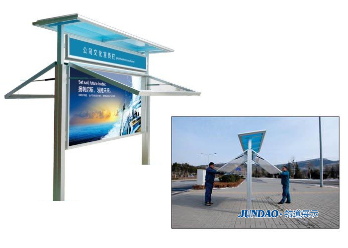 宣传栏的规格尺寸:宣传栏通常的尺寸为3米-6米,常规的宣传栏不超过4米。超过4米的宣传栏我们通常都建议客户选择异形宣传栏,因为这一类宣传栏更加有效果,当然价格也比较高,对公司来说效益也更好。所以客户如果经济能力比较强,建议客户选择异形宣传栏。宣传栏的窗打开方式有:玻璃推拉式、后开门式、前掀开式。宣传栏高度一般不超过2.5米。