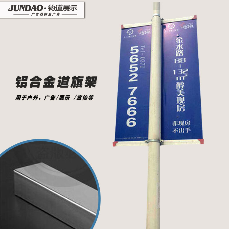单抱箍式道旗架|户外灯杆广告牌|广告架子