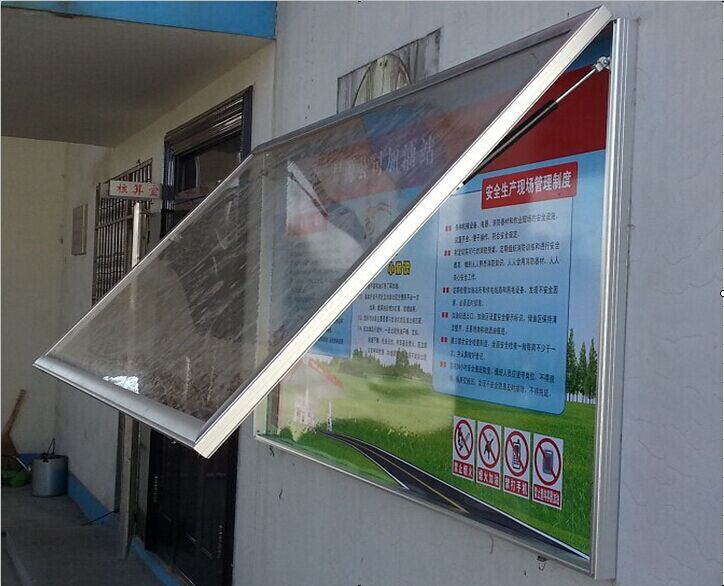 挂壁式报栏的型材组件较少,主体部分是框体的盖、底和液压杆