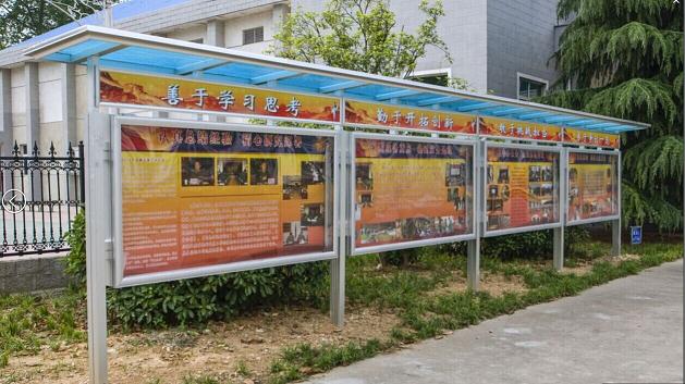 4、宣传栏是前开门式,采用液压助力、升降开启方便,前透明板材是耐力板,透明度高,耐劳防碎,不伤人,安全有保障。