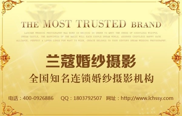 ★郑州兰蔻婚纱摄影★【咨询QQ:1803792507 联系电话:4000926886 联系手机:15858298286 微信公众号:lankouhunsha】兰蔻婚纱摄影是为了满足无数想望而诞生在北京的筑梦城堡,以幸福的魔法将每对新人的梦想接轨,妆点无数的幸福誓盟,缔结恋人渴求的完美想愿,打造专属于您的世纪梦幻婚纱摄影。兰蔻摄影引进各式充满品味的名牌礼服,以最完美的色彩装扮每对新人的绮梦,彷如化身炫丽的天使,轻临在这幸福的殿堂。不同的情境佐以不同的氛围表情,以最幸福的姿态通往永恒的理想未来。郑州兰蔻摄影地址:郑州市管城回族区紫荆山路裕鸿国际A座 2206-2207室