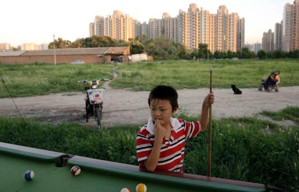2010年8月5日,北京,一块闲置地块上长满了杂草,附近摆起了台球桌。(图)