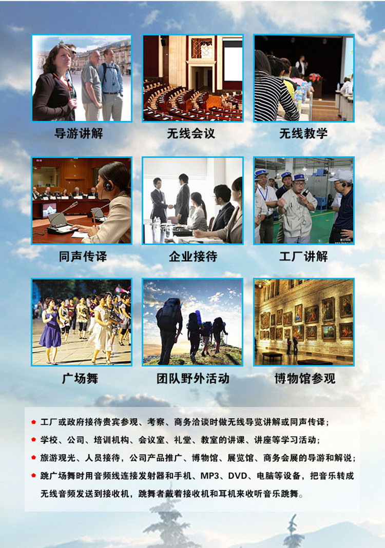 8--95信道,适合密集型场合,如开放式展厅,景点,会议,工厂接待