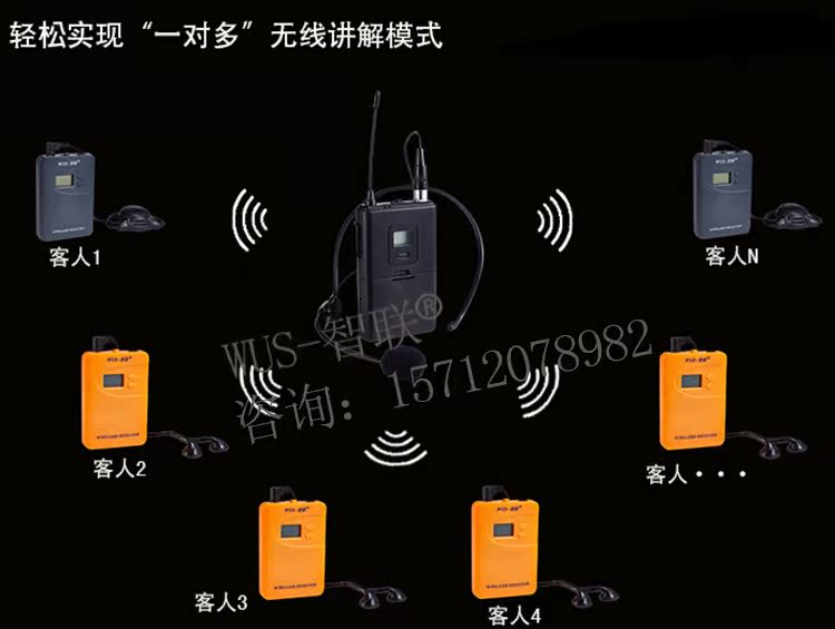 智联耳挂式无线团队导游讲解器、电子解说器、无线导览机一对多
