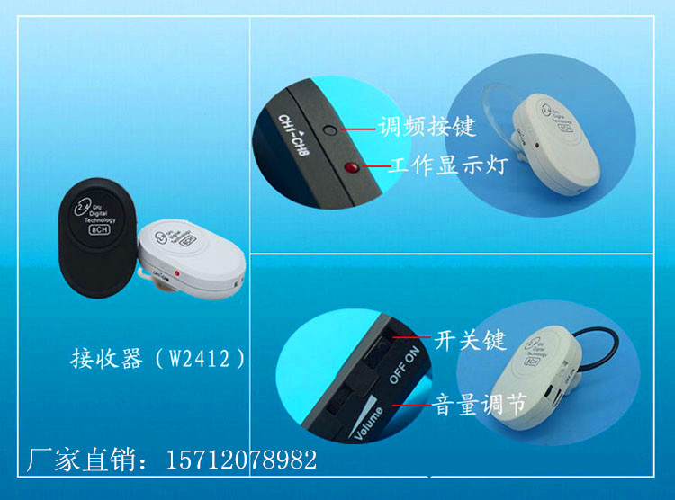 当发射器的通道和接收器的通道相同时,佩戴接收器的顾客就可以听到相同通道持发射器讲话者的声音。