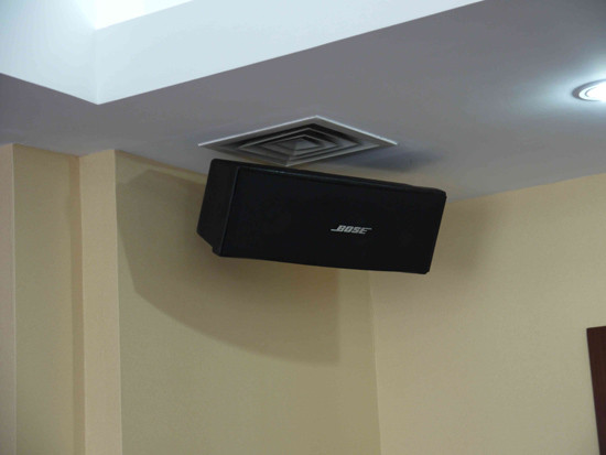 对房间的声学处理,重点在侧墙和天花板。原则上室内声波的处理扩散应多于吸收,目的是使共振强度降低,要防止过度使用吸音材料,以免房间的混响时间太短(小于0.3秒)而使声音干涩不圆润。对音箱后面的墙壁,最好不要有大片吸声物质,通常不需作处理,砖墙或水泥墙面会使声音饱满、充满活力。