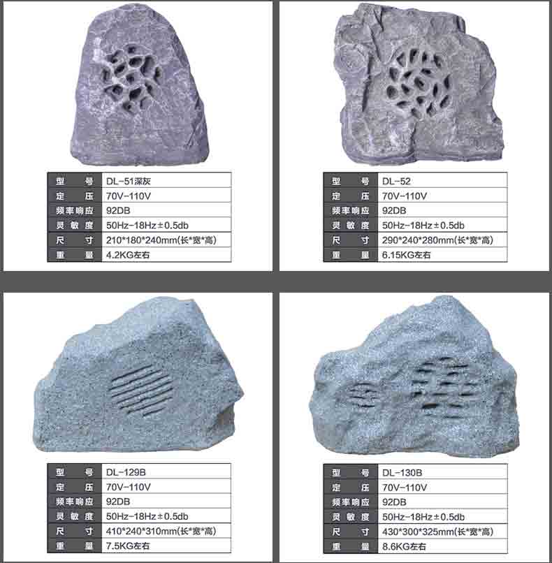 草坪音箱广泛应用于户外公园,旅游景区、学校、厂区、园区、住宅小区、别墅、度假村等场所。款式多样,造型新颖、防雨防晒,在提供背景音乐的同时起到点缀环境,烘托气氛的作用。绅宝DL系列草坪音箱具有坚固耐用、外形逼真、防水防腐蚀、环保无污染等特点,是您在众多品牌中不二的选择。