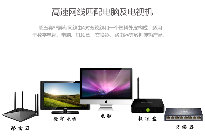 室内超五类高速非屏蔽电脑路由器宽带连接网线0.5米8芯纯铜可