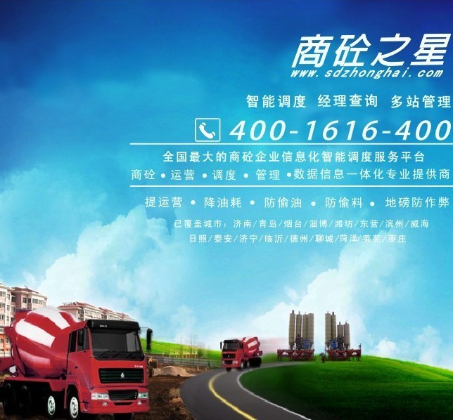 烟台“商砼之星”混凝土车辆信息综合管理系统是根据目前混凝土生产和运输的实际需求和特点,能够与搅拌站工控系统及混凝土ERP无缝对接。以混凝土运输流程管理和车辆信息综合管理为基础,融入了先进的移动应用等管理理念,采用GPS全球卫星定位技术、GPRS移动通信技术、GIS地理信息技术、网络通信与数据处理等技术研发的,具有自主知识产权的智能信息管理系统。