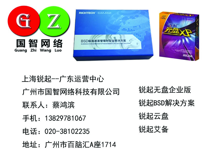 广州国智网络自成立以来,一直致力于无盘网络的开发和经营.2001年率先在广州市场推出无盘系统.始终坚持发展系统稳定,速度快,管理方便等为硬道理,一直得到各界同仁及网吧业主的垂青,并得到了一致的认同与好评。2006年代理上海锐起无盘软件.更锦上添花.给广大无盘用户带来福音.
