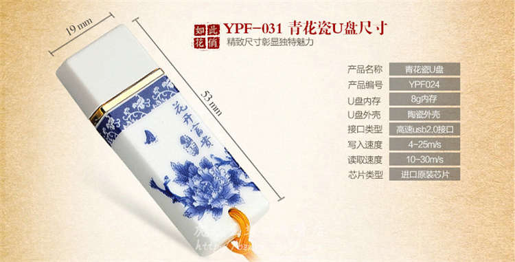 成都商务u盘定制批发 青花瓷礼品u盘生产厂家