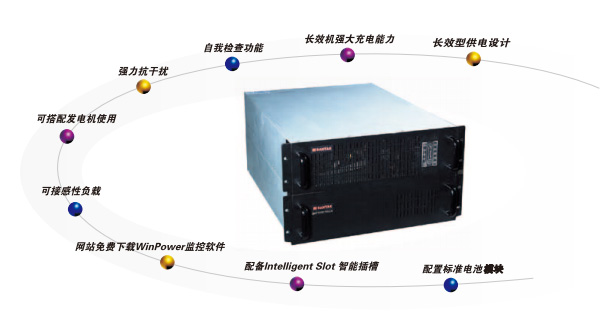 Rack UPS全面提供长效机供用户选择。配置合适的电池组,可以使用户放电使用时间可达8小时左右,以满足不同电网环境的要求。