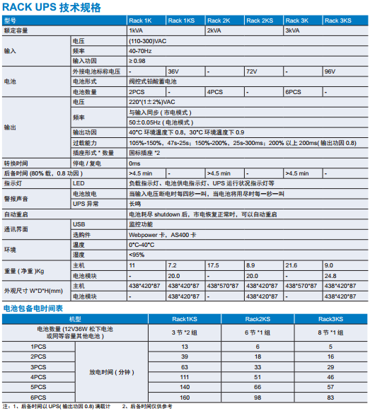 为用户提供标准型UPS 和长效型UPS 两种选择。其中,长效型UPS 可配置多个电池包或外接电池组,提供多达12 小时以上的后备保护时间。