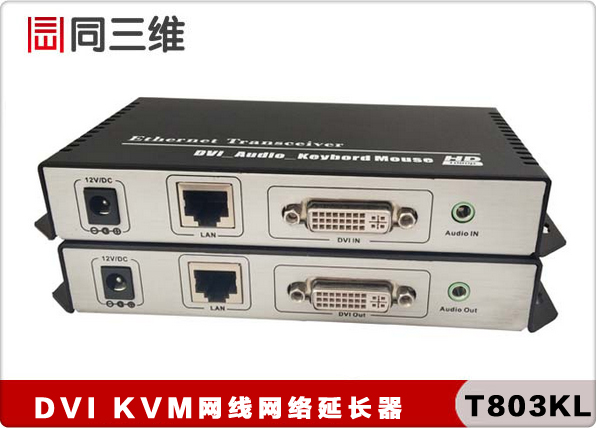 DVI网线延长器是由KVM发送器和KVM接收器组成,通过网线传输DVI、Audio、键盘、鼠标信号。