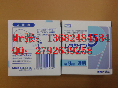 LM-TP309Y(9mm黄色)LM-380A线号机贴纸,张阳 13682484584 0755-83220551 QQ:2792639258,MAX线号机色带有分原装的和国产的。而这些原装和国产耗材又有什么不同呢。在市场上走了这么走的时间最长就是MAX线号机,机器用到的色带最环保。我们常见到的MAx线号机色带都是二个小卷心一样的碳带。型号LM-IR300B,原装色带型号。长度:50mm宽。MAX 线号机色带原装色带打印热缩管效果较好,所以尽量选择用原装色带。而MAX国产色带CH-IR300B,线号机色带现在市场上商家比较多,耗材质量大有不同。所以请尽可能选择用原装色带。MAX色带在使用时候有一个对于不懂的客户来说有一件麻烦事需要处理。那就是安装卡夹,色带是二个小的碳带卷心,是需要安装到卡夹里面才能正常使用,机器在购买的时候随机也配套了一个卡夹供客户重复使用的。不注意的客户,色带在安装卡夹的时候很容易就装反了。今天深圳鸿标公司遇到了一个很奇特的客户,在购买MAX原装色带的时候,有多少个色带就配了多少个色带卡夹, 这样是有点浪费。客户也是怕麻烦,所以安装色带到卡夹里面的方法很简单:色带卷有一个有字,有一面没有字。有字的一面朝上。就可以了。