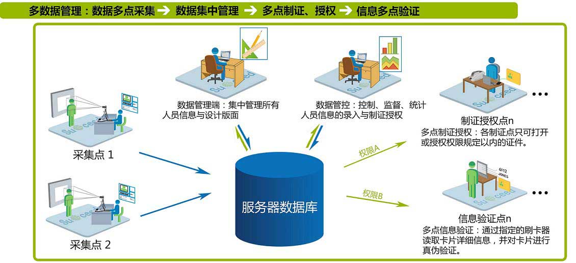 斯科德V9证卡软件斯科德证件管理发行系统V9更加侧重于“管理”,而不仅仅是“证件制作”,相比较于之前的V6、V8,它最大的特点是从“单点采集,单点制证”进化到“单点采集,多点制证”、“多点采集,单点制证”(某市华侨证制作方案)及“多点采集,多点制证”,即支持联网+单机两种使用方式,使用灵活,这对数据的整合和管理提出了更高的要求。斯科德V9证卡软件斯科德证件管理发行系统V9是我公司结合多年的制证经验开发出的一款功能强大的证件管理发行系统,能够满足证件制作过程中的绝大部分需求,以下是斯科德V9证卡软件斯科德证件管理发行系统V9的三大“杀手锏”: